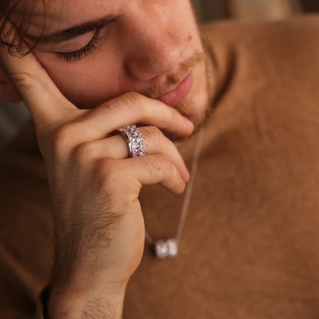 Un nuevo diseño moderno del clásico anillo de la eternidad con toques de inspiración italiana. No es fácil olvidar este anillo en forma de corona. Como usuario, que su legado tampoco se olvide fácilmente.